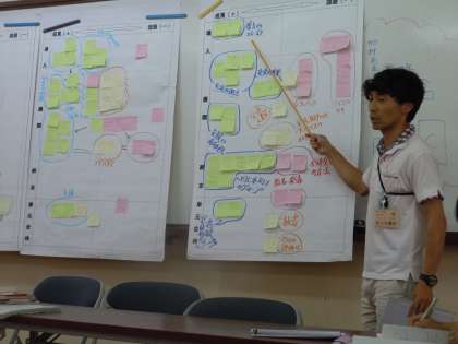 今日,2年1組で行われた国語科の研究授業。その授業の成果や課題について,さっそく勉強会を放課後に行いました。この日の授業のために,1ヵ月以上も前から準備をしていた2年生担任や研究部の先生たちですが,それでもうまくいかない部分はあります。もっと子どもに届く授業へと改善するためにはどんな手立てや工夫が考えられたか,いろいろと議論を交わし合います。長年教師をしていても,100パーセント満足のいく授業を行うことは本当に難しいです。ですが,目の前で頑張る子どもたちの「先生できた〜!」,「先生,わかった〜!」という声が聞きたくて,これからも勉強会を重ねていきます。