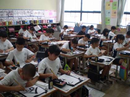 6年生は先週から,「右京地区“社会を明るくする運動“習字コンテスト」の作品づくりに取り組んでいます。6年全体で5点を応募する予定です。今回に限らず,いつも集中して習字を行う6年生の子どもたち。うまく書けなくて「あ〜あ・・・」というため息が漏れたりもしますが,あじわいのある自分らしい字を書いているところがいいですね。