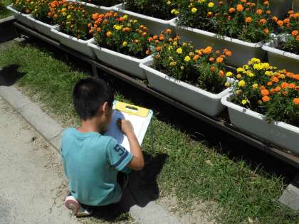 しかし,バッタを見つけて観察したり,中庭の亀を観察したりと思い思いに活動していました。