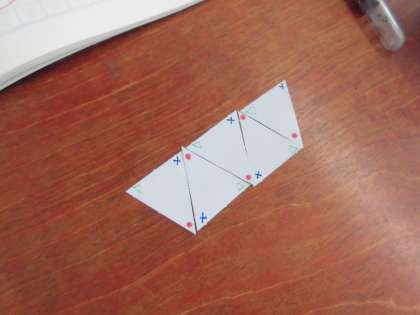 算数の時間には合同な図形を学習しています。三角形を敷き詰めることで,三角形がもつ角の大きさの秘密がわかります。何か気づいたことはありますか。