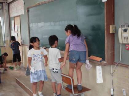 ロッカーを移動させたり,黒板を拭いたり…