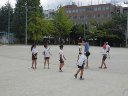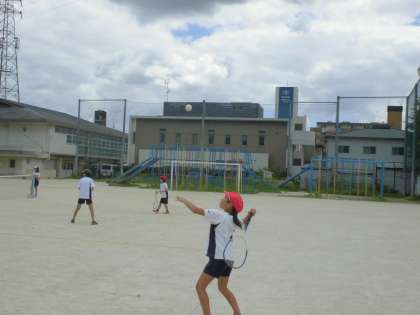 今週29日(土)はソフトテニスの全市交流会です。太秦小にて行われます。少し暑さも和らいで,楽しそうに練習に励む子どもたち。なかなかサーブが入らず,ラリーの応酬というわけにはいきませんが,ときどき見事なサーブが決まったり,リターンが決まったりします。当日の試合では,仲間を精一杯応援し,練習の成果を出し切ってほしいものです!