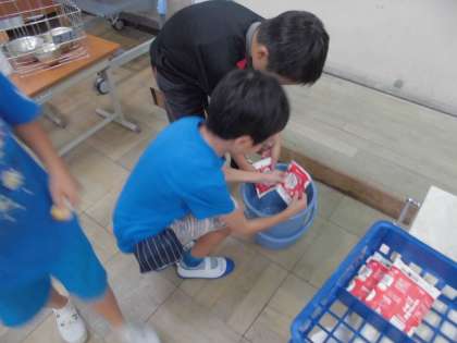 今日から給食の時に飲んでいる牛乳が変わりました。