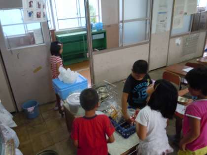 夏休み明けから,給食で出される牛乳パックが新しくなりました。前とは少し違うたたみ方をするということで,子どもたちは,その説明が書かれたカードををじっくりと読みながら,丁寧にパックをたたんでいました。