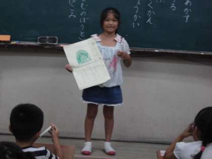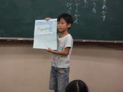 今日は,夏休みの思い出を,絵日記をもとに発表しました。