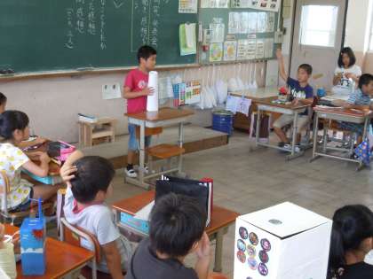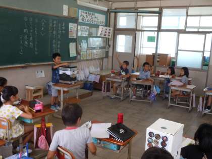今日は,夏休み中にがんばって取り組んだ『自由研究』の発表会を行いました。何をどのように取り組んだか,どこを工夫したか,取り組んでどのように感じたかなど,クラスの前で一人ずつ発表しました。質疑応答の場面では,たくさんの感想や質問が行き交い,友だちの作品に対して興味津々な子どもたちの気持ちが,よく伝わってきました。一人ひとりのがんばりを認め合う,すてきな時間になりました。