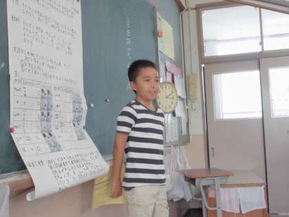 今日は自由研究の発表会でした。みんなが一生懸命作ってきた研究内容を実物を見せながら発表し,感想を言って交流しました。