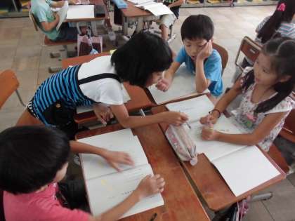 今日の国語の授業では,詩を楽しもうということで,2つの詩から班で音読を発表するものを選び,それぞれが工夫を考えました。「ここは全員で読もう。」や,「じゃあ,ここは私がゆっくりと読むね。」などの話し合いをしていました。詩は,「わたしと小鳥とすずと」と「山のてっぺん」の2つです。同じ詩でも,工夫の違いに注目して聞きたいなと思っています。