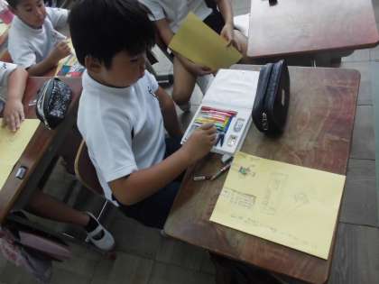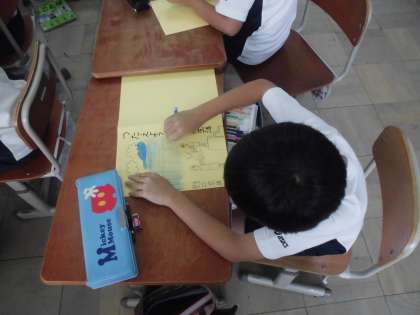 「1年生に葛野小学校の学校生活をつたえよう。」という目的にして,勉強を進めています。今日は,お手製の表紙を作りました。つたえる内容が決まったので,各々が自分のテーマに合った表紙を作っていました。