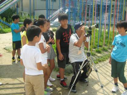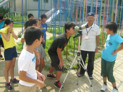 子どもたちの理科離れがよく言われますが,本校では理科支援員さんに来ていただいて,子どもたちが大好きな科学実験などがしっかりできるように準備をしてもらっています。今6年生は「月と太陽」の学習をしていますが,今日は午前中の西の空に下弦の月がみえるということで,わざわざご自宅から望遠鏡を準備して下さいました。興味しんしんで望遠鏡をのぞきこむ子どもたち。見えた時には思わず「うわ〜,見えた!」と声をあげます。教科書での学習のあとに,自分の目で本物を見て確かめるという学習は子どもたちに感動を与えます。さらなる学習の意欲につながるといいですね。