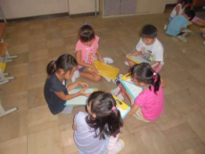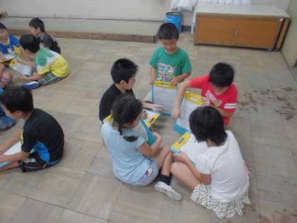 かどのまち探検にむけて生活科の時間にグループに分かれて話し合いをしました。