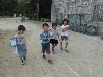 今日は,ストップウォッチを使って,歩く時間を計りました。お題は「教室から給食室まで」「100m」「校庭1週」プラス「自分たちで考えた道のり」です。帰ってきた子に聞くと,予想していたよりも短い時間で済んだと思った子も,めちゃくちゃ長かったと答えた子もいました。ストップウォッチを見ながら歩いていて,いつもそんな歩き方かな?という子もいました。
