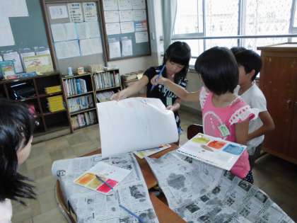 図工「お話の絵」画用紙づくり