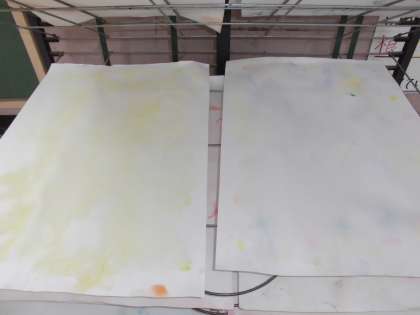 色のにじみを生かしながら,淡い不思議な色で画用紙を染めていきました。