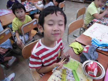 はじめての和菓子で,食べたことがない子もいましたが,みんな「甘くておいしい〜」とパクパク食べていました。