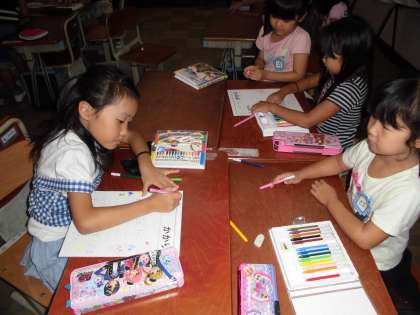 ポスターに色を塗ったり,模様を描いたり,それぞれの係らしいポスターができました。
