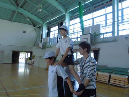上に乗る子は視界がぐっと変わり,緊張感があります。下の子の支えるのに必死!それぞれに大変なことがあるようです。