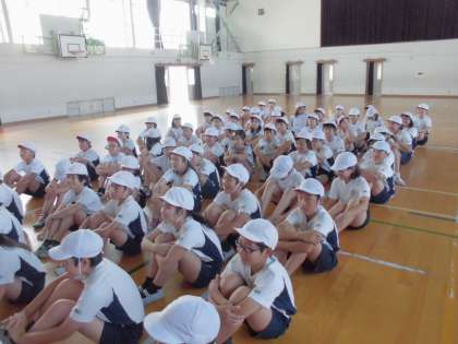 今日から,学年全体で騎馬戦の練習をしました。初めて騎馬の組み方を知り,実際に組んでみました。