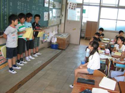 18日(金)に1年生の教室で行う発表会に向けて,今日はクラスでリハーサルをしました。1年生が分かりやすいように,どんなところに気を付ければよいか,互いにアドバイスをし合う子どもたち。リハーサルを経て,よりよい発表に仕上げていってほしいと思います。