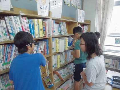 今日は,図書室に行きました。今回は,読書感想文を書くための本を選びに行きます。自分にピッタリあう本はどれかな。自分の考えや思いが書けそうな本はどれかな。そんなことを考えながら行きました。
