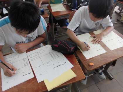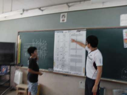 写真は記録・得点係です。順位を左右する重要な係です。競技終了後の得点発表でもみんなの注目を集めます。