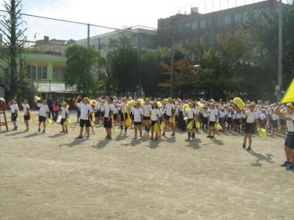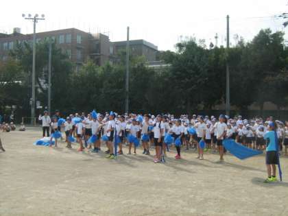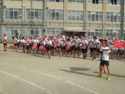 応援団長を中心に,各色が応援合戦の練習を行います。団長の気合いの入った大声が運動場に響き渡ります。各色とも,熱い応援を見せてくれました。さて今年の応援賞はどの色の手に渡るのか・・・?楽しみです。