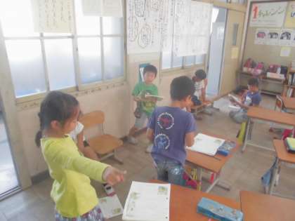 今日は各グループに分かれて,音読劇の練習をしました。
