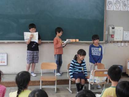 2組では,国語の時間に,「お手紙」の音読劇をしました。