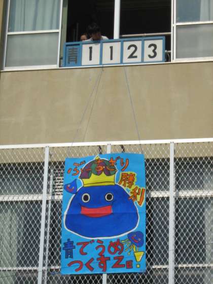 午前の種目を終えて・・・。結果は見ての通りです。午後の頑張りで,順位がまだまだ入れ替わりそうですね。どの色も優勝目指してがんばれ!