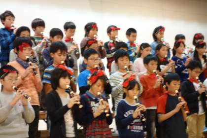 リコーダーは3つのパートに分かれて,音の重なりや動きに気をつけて演奏しました。
