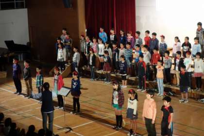 合唱の前には,歌詞の群読と国語の「未来をよりよくするために」をテーマに考えたことを発表しました。また,合唱では歌の上手な6年生の中からソリストを9名募り,見事な歌声を響かせました。