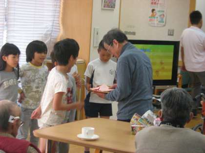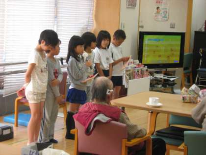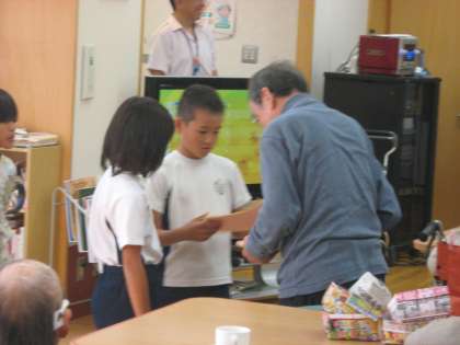 今日は,先日の交流会「戦争について教えてもらおう」において,たくさんのことを優しく教えてくださったお礼に,各クラスの代表委員が,葛野デイサービスまで手紙を届けにいきました。いつものように温かく迎えていただき,感謝の気持ちを伝えることができました。