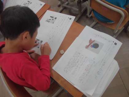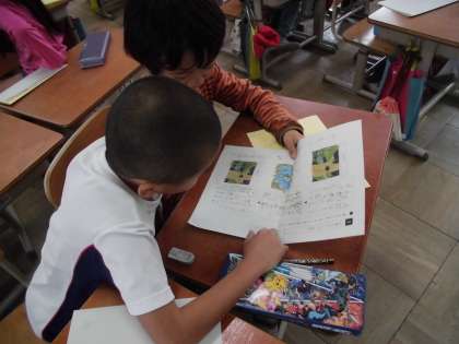 国語科の学習で,「お話のさくしゃになろう」に取り組んでいます。