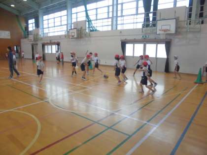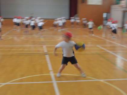 みんな元気にコート内を走り回り,投げたり,避けたり,頑張りました。