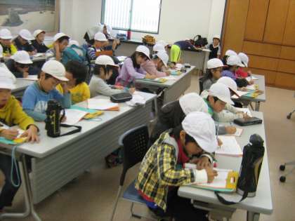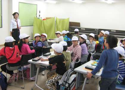 製造工程の見学をさせていただいた後は,「質問タイム」ということで,見学の中で感じた疑問について職員の方々に答えていただきました。たくさんある質問の一つ一つに丁寧に答えていただき,会社や商品の歴史,商品の数,人気の商品,働いている人など,子どもたちは様々なことについて学ぶことができました。