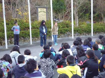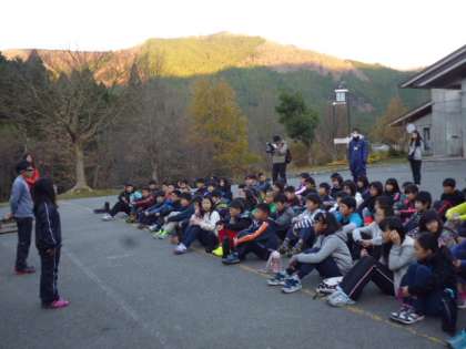 全員元気に朝の集いを行いまいした。今日は天狗杉登山です。