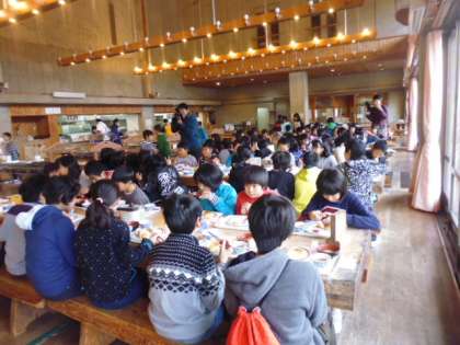 朝食です。バイキングです。おいしくいただきました。栄養とって,さあ,山に出発です。