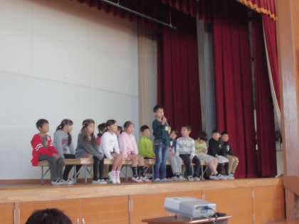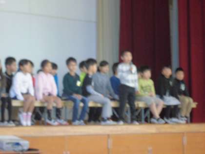 12月は人権月間ということもあり,今日の友だちの日では,1〜6年までの各クラスの代表者が人権標語を発表してくれました。