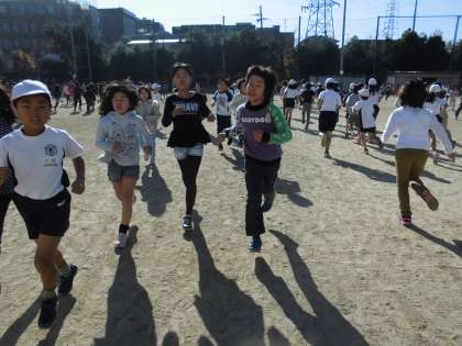 今日も快晴でランニング日和でした。ストイックに全力疾走する子やマイペースに走り続ける子・友だちと競って走る子などと一緒に担任も走りました。