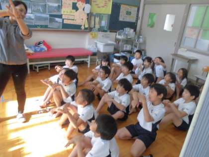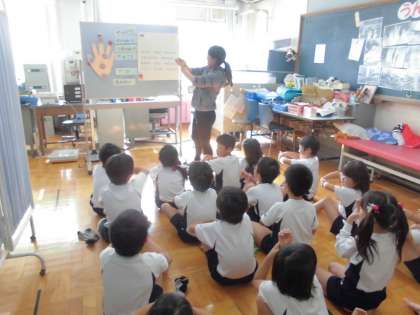 養護の先生から,手洗いの仕方についてお話をしてもらいました。