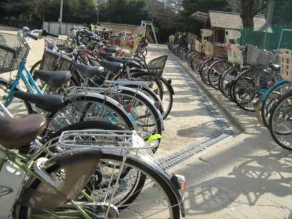 自転車,自転車,自転車・・・。たくさんの保護者の方に自由参観に来ていただいています。ありがたいことです。授業でのわが子の活躍を期待して,いざ教室へ!