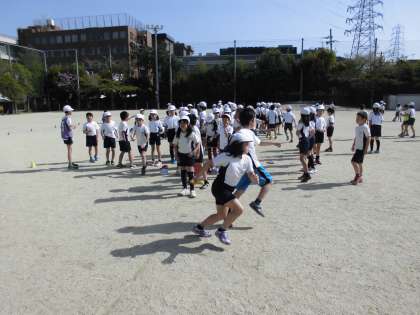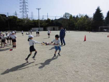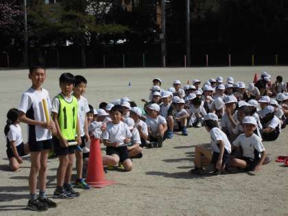 今日は,快晴の中でクラス対抗リレーをしました。一人ずつバトンを渡してゴールにつなぎました。応援にも熱が入り,走者は抜きつ抜かれつのデットヒートを繰り広げていました。
