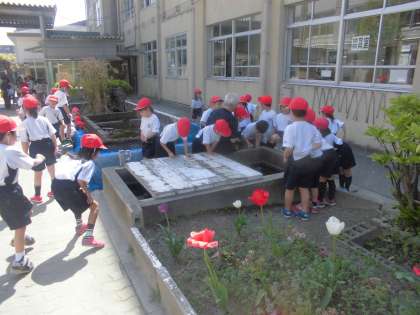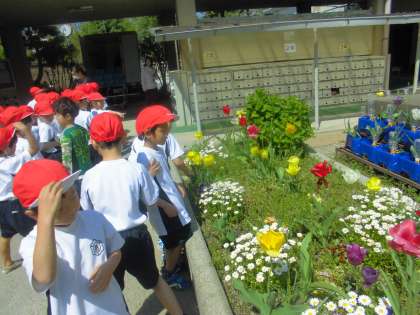 生活科の時間に中庭に出て春見つけをしました。