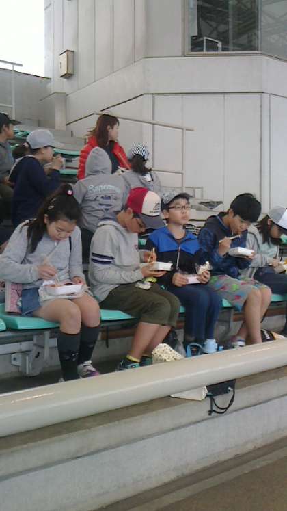 イルカショーを見た後は、少し早めのお弁当。愛情たっぶりのお弁当にみんな笑顔です。