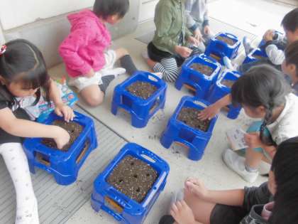 昨日から子どもたちは今日を楽しみにしていました。朝から「今日は種まきできるかな。」と,心配していました。