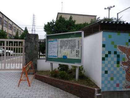 校門横の掲示板には、今月の行事予定と詩が掲示してあります。