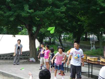 わかば学級の2曲目は歌で「ぼくのひこうき」です。歌い終わった後、紙飛行機を客席に向けて飛ばしました。