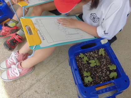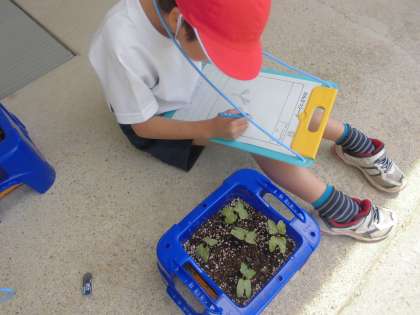 思っていたよりも早く,あさがおの芽が出たので,少し時間割を変更して生活科の時間にあさがおの観察をしました。
