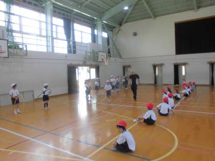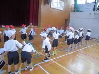 最後は友だちと手をつないで,体を使ってフラフープリレーをしました!
