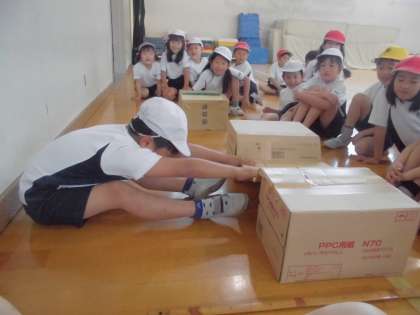 今日は全校で一斉に体力テストを実施しました。体育館では,長座体前屈と反復横とび,そして上体起こし,そして,運動場では,立ち幅跳びとソフトボールなげを実施しました。1年ぶりの体力テストということで,長座体前屈などでは,「どうやるんやったっけ?」と,やり方を思い出しながら活動し,子どもたちは,今出せる精一杯の力を出して,テストに取り組んでいました。